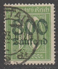 Германия (Веймарская республика) 1923 год. Стандарт. Цифровой рисунок в квадрате. Надпечатка нового номинала, 800Tsd/10Pf., 1 марка из серии (гашёная) (1 из 14) (6,5)