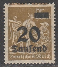 Германия (Веймарская республика) 1923 год. Стандарт. Крестьяне. Надпечатка нового номинала, 20 Tsd/25 М, 1 марка из серии (наклейка) (1 из 20)