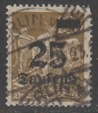 Германия (Веймарская республика) 1923 год. Стандарт. Крестьяне. Надпечатка нового номинала, 25 Tsd/25 М, 1 марка из серии (гашёная) (1 из 20) (18)