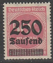 Германия (Веймарская республика) 1923 год. Стандарт. Надпечатка нового номинала, 250Tsd/500М, 1 марка из серии (наклейка) (1 из 20)