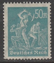 Германия (Веймарская республика) 1923 год. Стандарт. Рабочие: шахтёры, 50 М., 1 марка из серии (наклейка)