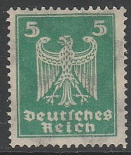 Германия (Веймарская республика) 1924 год. Стандарт. Новый имперский орёл, 5 Pf., 1 марка из серии (наклейка)