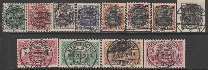 Германия (Восточная Пруссия) 1920 год. Стандарт. Аллегория. Почтамт. Надпечатка, 12 марок из серии (гашёные)