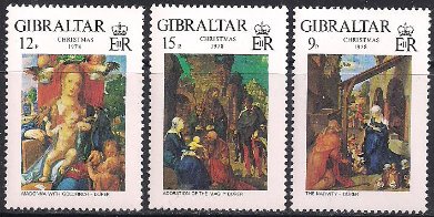 Гибралтар 1968 год. Живопись. Рождество. Серия без 1 марки (3 марки)