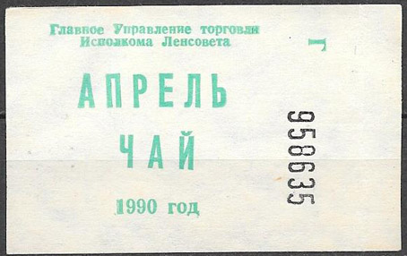 Главное управления торговли Исполкома Ленсовета, талоны на чай. Апрель 1990 г. Разные серии