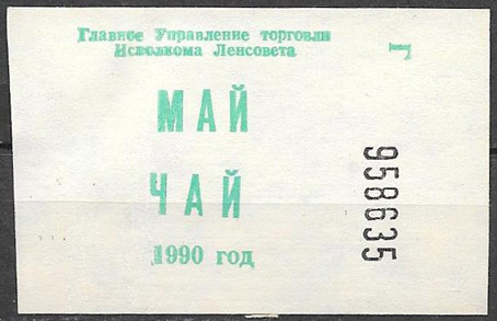 Главное управления торговли Исполкома Ленсовета, талоны на чай. Май 1990 г
