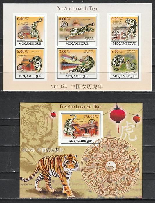 Год Тигра, Мозамбик 2009 год, малый лист + блок без зубцов