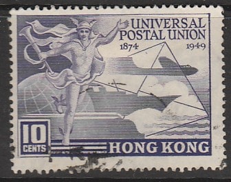 Гонконг 1949 год. 75 лет Всемирному почтовому союзу, ном. 10 С, 1 марка из серии (гашёная)