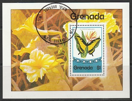 Гренада 1975 год. Бабочки и цветы, блок (гашёный)