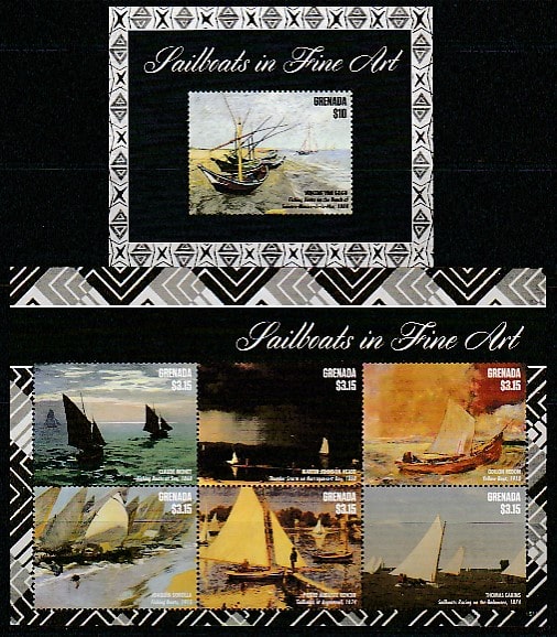 Гренада 2015 год. Парусные лодки в живописи, малый лист + блок (н)