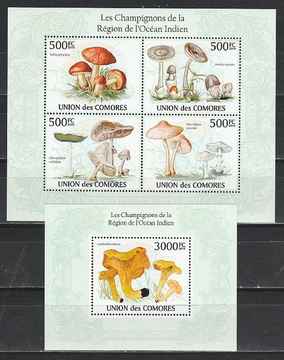 Грибы, Коморы 2010, малый лист + блок