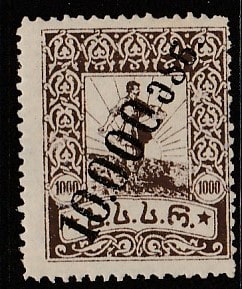Грузия 1923 год. Сеятель. НДП чёрного цвета, ном. 10000 р./1000 р., 1 марка из серии (наклейка) (1 из 5)