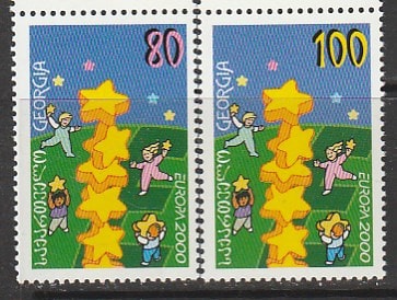 Грузия 2000 год. Europa. Дети строят звёздную башню, 2 марки.