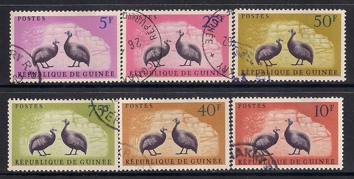 Гвинея 1961 год. Цесарки. 6 гашеных марок