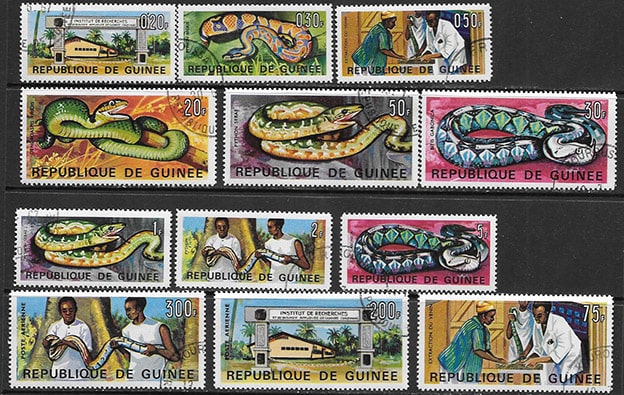 Гвинея 1967 год. Змеи, 12 гашеных марок