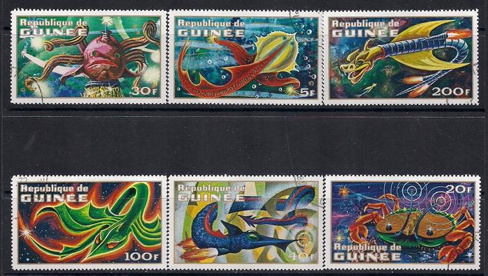 Гвинея 1982 год. Морские животные. 6 гашеных марок
