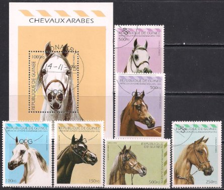 Гвинея 1995 год. Лошади. 6 марок + блок (гашеные)