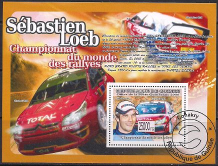 Гвинея 2008 год. Автогонщик С. Лоэб. Гашеный блок Сувенирный выпуск
