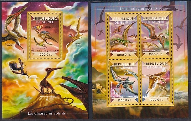 Гвинея 2015 год. Летающие динозавры, малый лист + блок