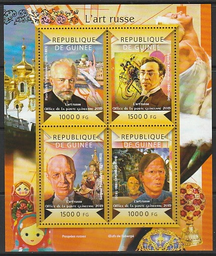 Гвинея 2015 год. Русское искусство и культура. Художники и композиторы, малый лист. (ф074
