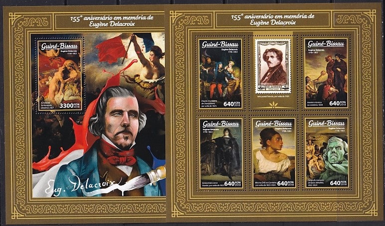 Гвинея-Бисау 2018 год. Живопись. Эжен Делакруа, малый лист + блок