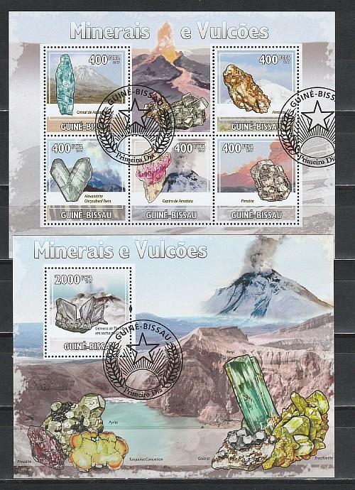 Гвинея-Бисау 2009 г, Минералы Вулканов, гашёный малый лист + блок.