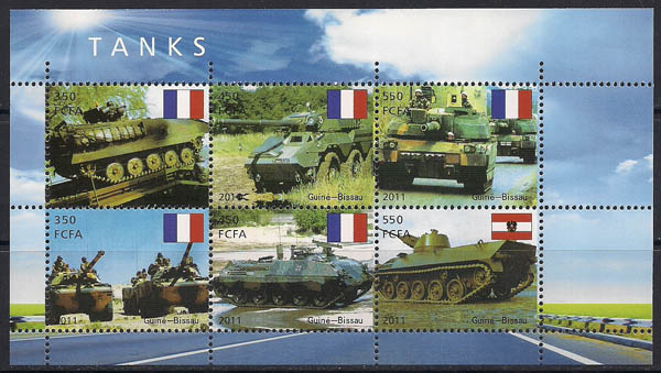 Гвинея-Биссау 2011 год. Французские модели танков. 1 малый лист.