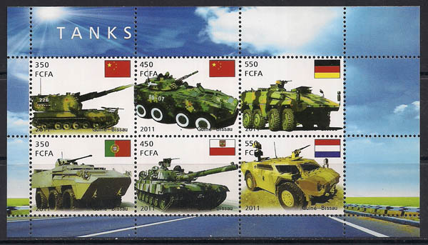 Гвинея-Биссау 2011 год. Танки и бронемашины разных стран. 1 малый лист.
