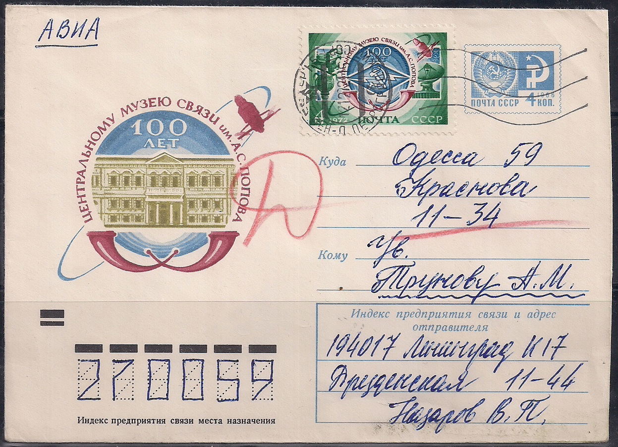 ХМК. 100 лет центральному музею связи имени А.С. Попова, 25.07.1972 год, № 72-403, прошел почту
