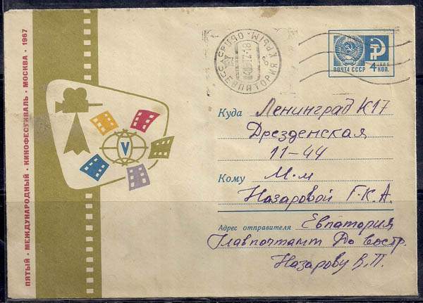 ХМК. 5-й Международный кинофестиваль в Москве. № 67-209, 25.05.1967 год, прошёл почту