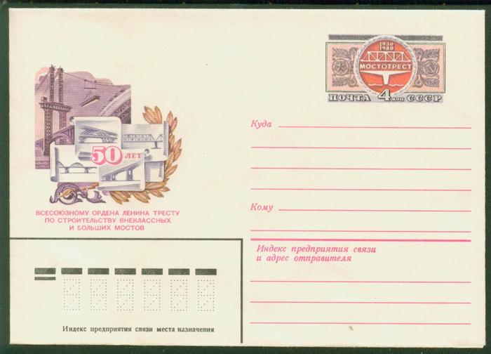 Конверт 50 лет тресту по строительству мостов. Выпуск 05.06.1980 г. № 80-358. с ОМ