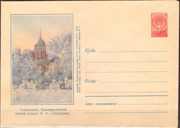 ХМК 57-104 Ульяновск. Краеведческий музей имени И. А. Гончарова. Выпуск 12.06.1957 г.