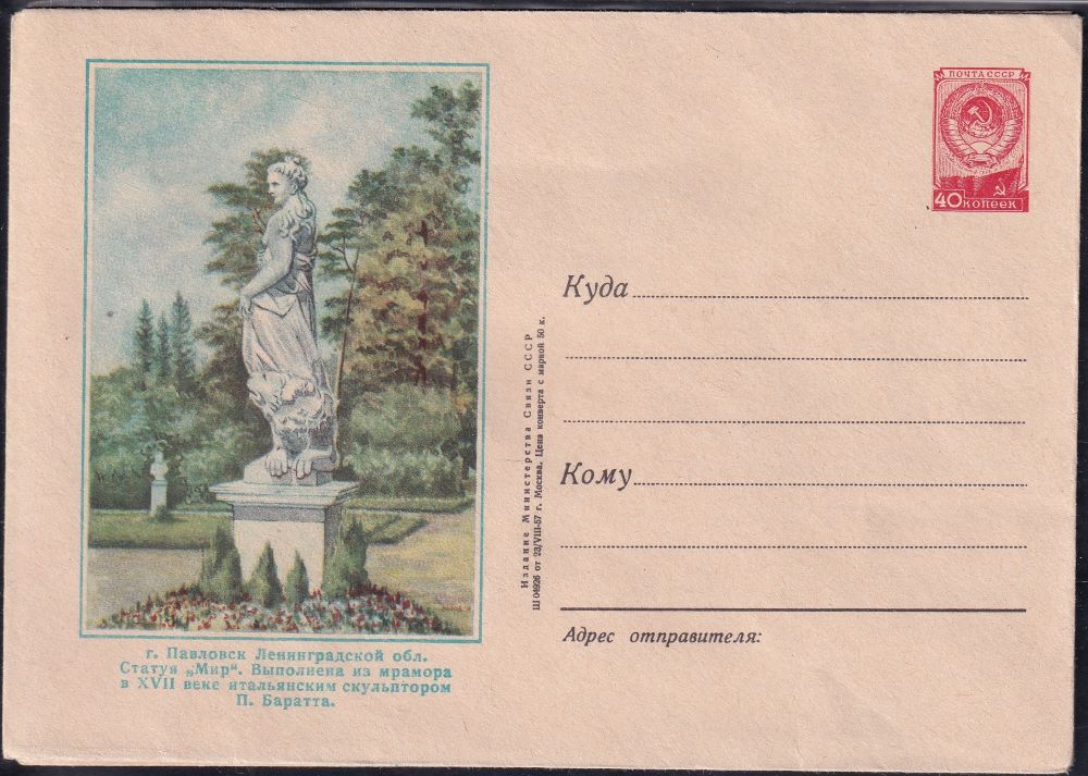 ХМК 57-166 Павловск. Статуя "Мир" П. Баратт. Выпуск 23.07.1957 год
