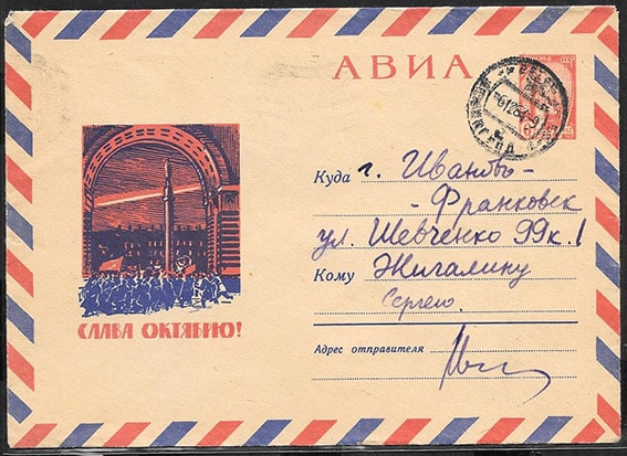 ХМК 64-423 Слава Октябрю! Авиа, 4.09.64 г. Прошло почту