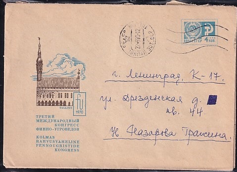ХМК 70-275 Таллин. Третий Межд. конгресс финно-угроведов. Выпуск 3.06.1970 год, прошел почту