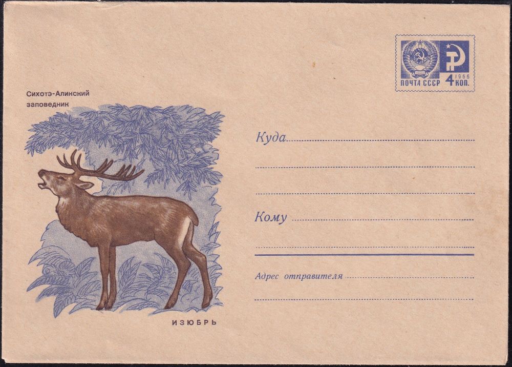 ХМК 70-339 Сихотэ-Алинский заповедник. Изюбрь. Выпуск 1.07.1970 год