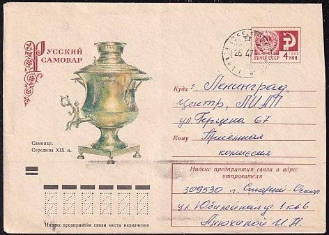 ХМК 73-410 Русский самовар, середина XIX в. Выпуск 16.07.1973 год, прошел почту