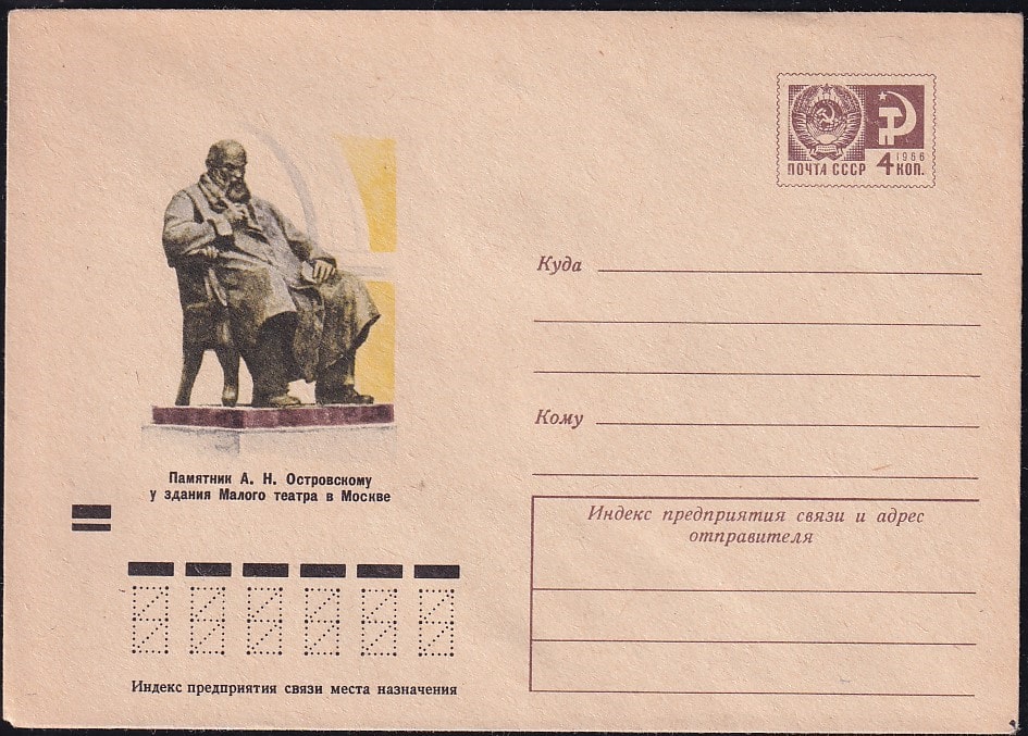 ХМК 73-42 Памятник А. Н. Островскому у здания Малого театра в Москве. Выпуск 22.01.1973 год