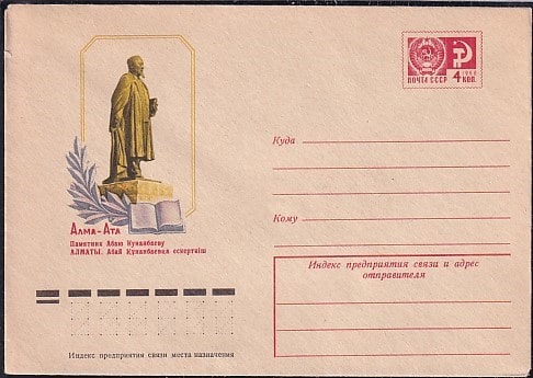 ХМК 74-842 Алма-Ата. Памятник Абаю Кунанбаеву. Выпуск 26.12.1974 год