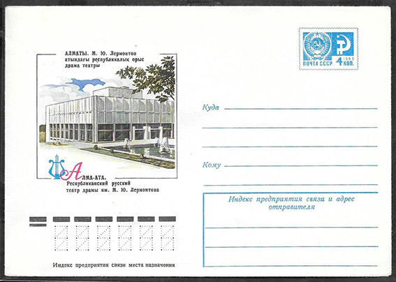 ХМК 77-334. Алма-Ата. Республиканский русский театр драмы им. М.Ю. Лермонтова. 1977 год