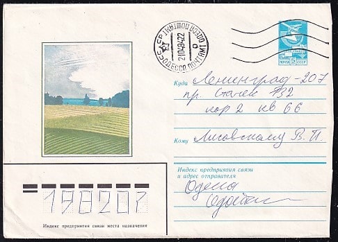 ХМК 83-164 Летний пейзаж, пашня. Выпуск 4.04.1983 год, прошел почту