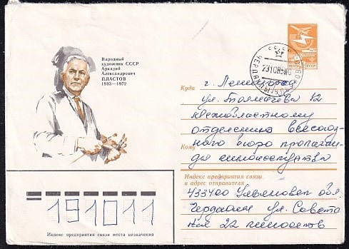 ХМК 83-629 Народный художник СССР А.А. Пластов. Выпуск 14.06.1983 год, прошел почту