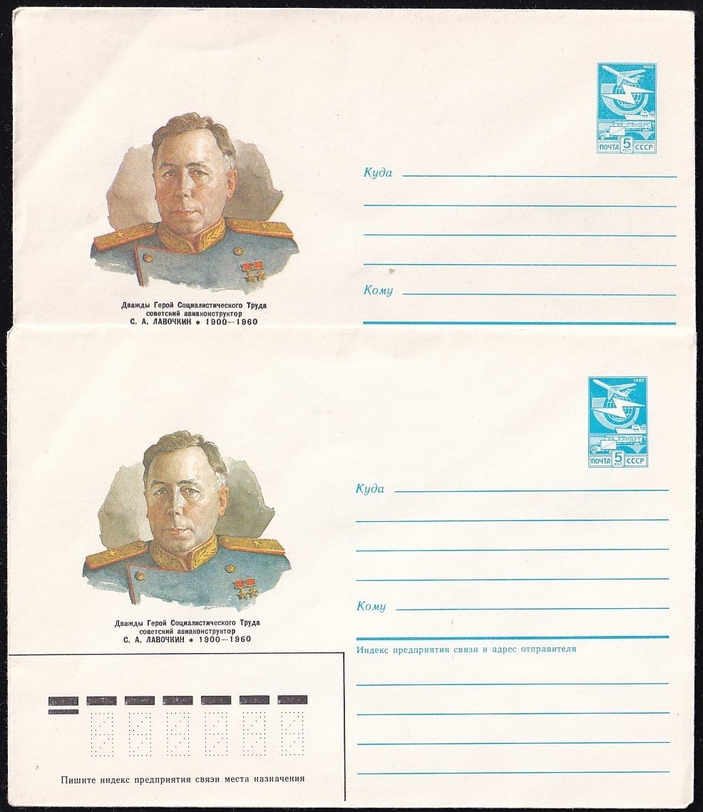 ХМК 85-258 Авиаконструктор С. А. Лавочкин. Выпуск 14.05.1985 год (разновидность цвета)