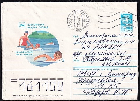 ХМК 86-135 Всесоюзная неделя пловца. Каждый должен уметь плавать! Выпуск 25.03.1986 год, прошел почту