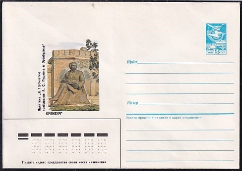 ХМК 86-340 Оренбург. Памятник "К 150-летию пребывания А. С. Пушкина". Выпуск 17.07.1986 год
