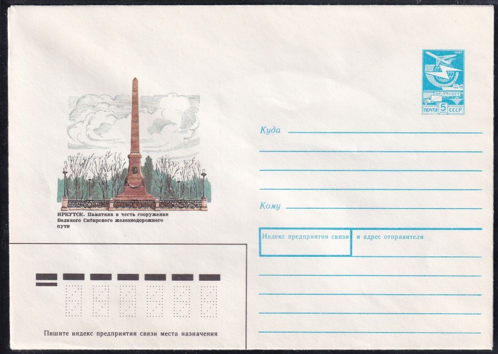 ХМК 89-185 Иркутск. Памятник в честь сооружения Великого Сибирского железнодорожного пути. Выпуск 12.04.1989 год