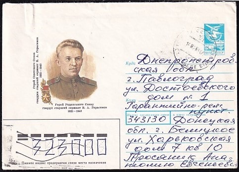 ХМК 89-354 Герой Советского союза В.А. Герасимов. Выпуск 22.09.1989 год, прошел почту (ВВ)