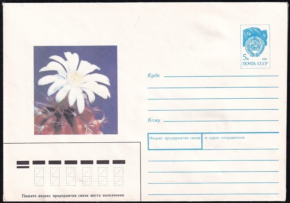 ХМК 90-457 Кактус гимнокалициум Михановича. Выпуск 5.11.1990 год, замят