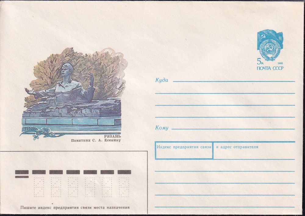 ХМК 90-66 Рязань. Памятник С.А. Есенину. Выпуск 14.02.1990 год