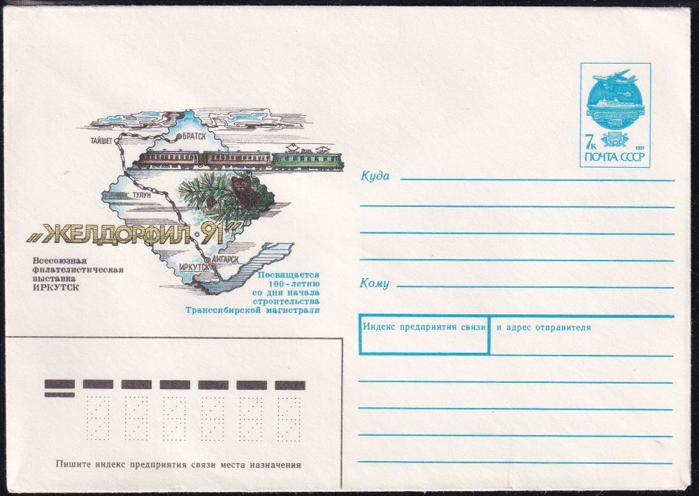 ХМК 91-180 Иркутск. Филвыставка "Желдорфил-91". Выпуск 27.05.1991 год